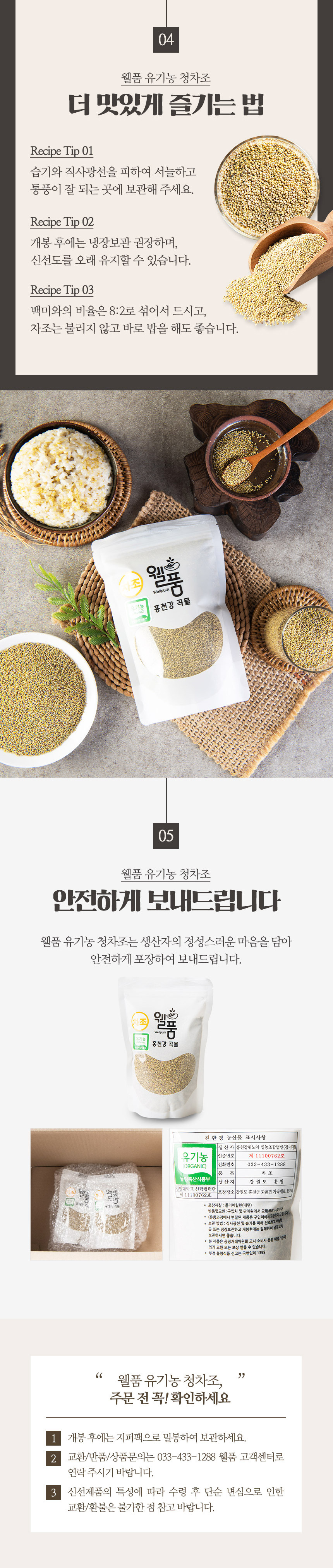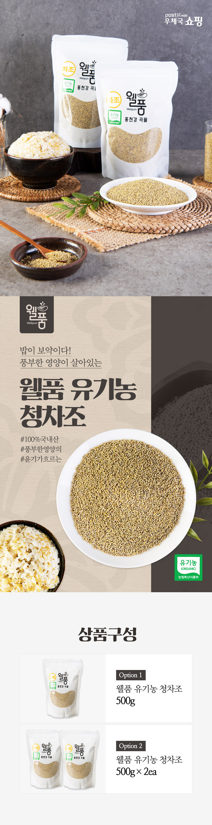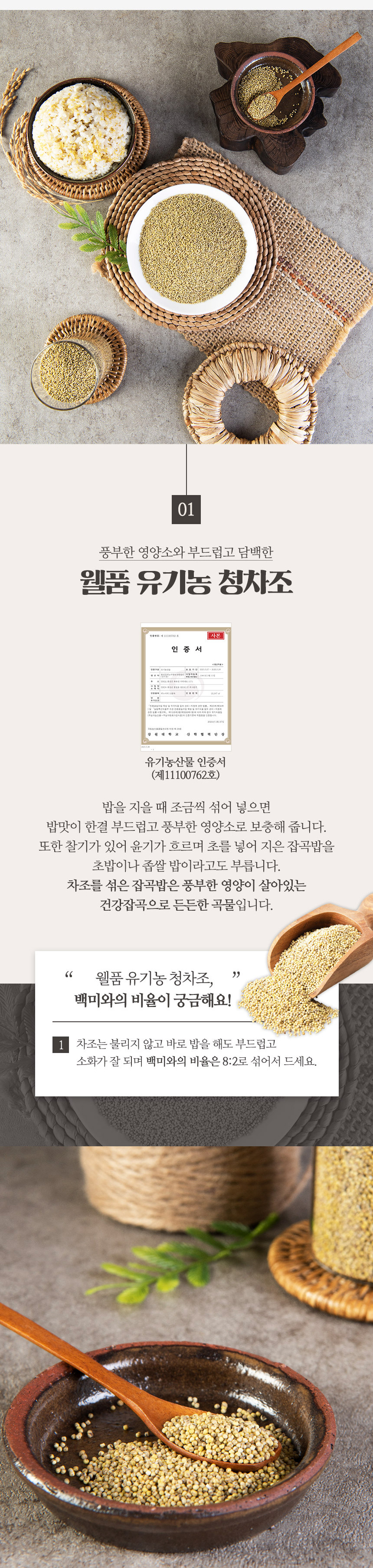 잡곡/혼합곡 > 웰품 유기농 청차조 500g 1kg 1.5kg 2kg 유기농 인증